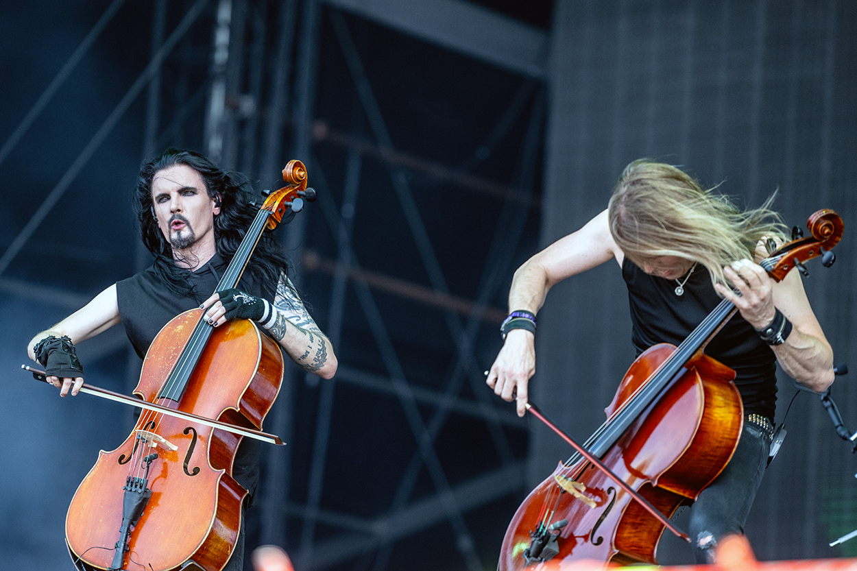 C’est finalement vers 17h30 que je me présente dans le pit photo de la Mainstage 1 (l’une des deux plus grands scènes du festival) en vue d’y couvrir en images le set d’Apolyptica qui débute à 18h. D’emblée, le quatuor finlandais, composé de trois violoncellistes et d’un batteur, met l’ambiance, enchaînant les titres sans temps mort, dans un registre oscillant entre metal symphonique et heavy metal. De quoi nous échauffer tranquillement les tympans, même si, bien qu’il fut agréable à l’oreille, ce premier concert de la journée ne me laissa toutefois pas un souvenir impérissable.