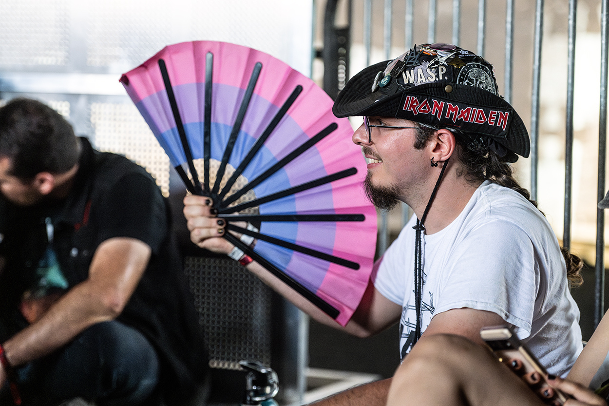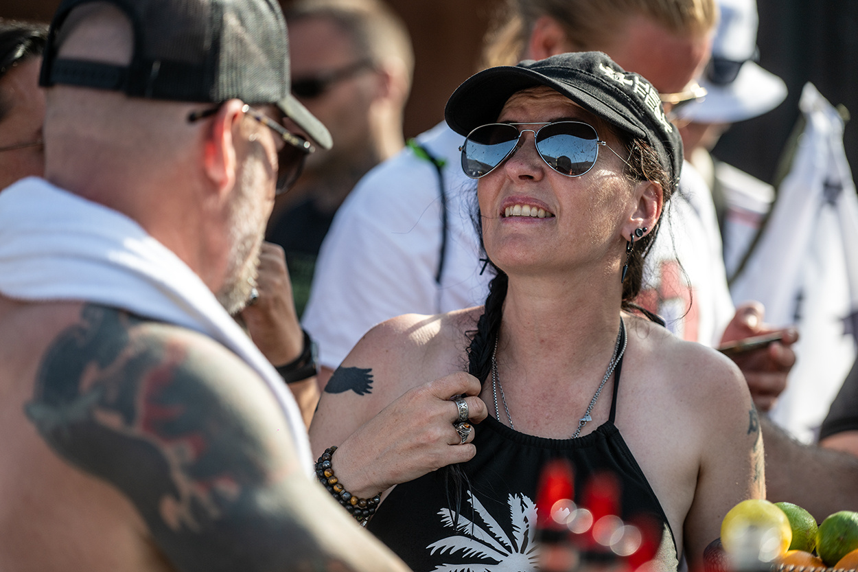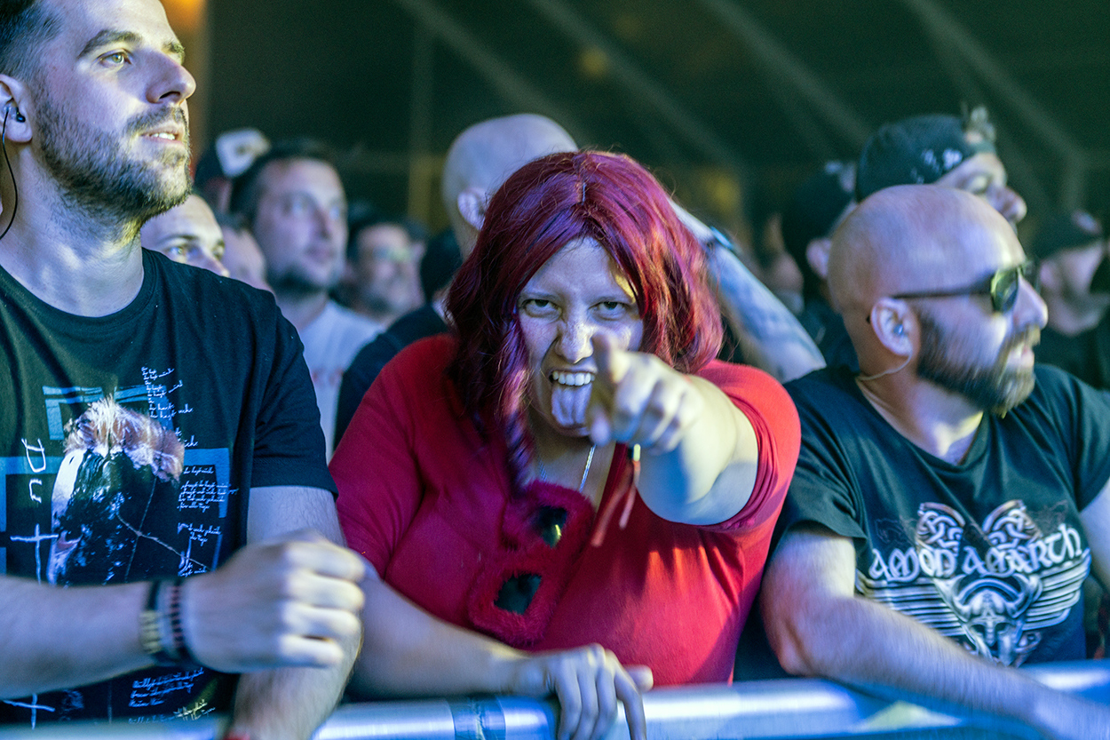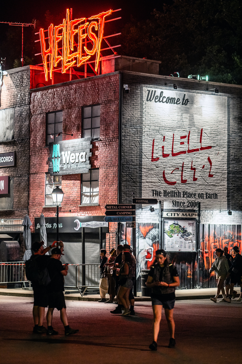 Comme à l’accoutumée depuis maintenant quelques années, le premier jour du Hellfest s’étale sur une plage horaire plus courte que celle des suivants. Les concerts débutèrent à 16h30 pour se terminer à 2h du matin. Avant même d’entrer sur le site, je remarque de suite quelques nouveautés architecturales, dont un grand mur estampillé « Hellfest Festival Park », accompagné d’une grande arche d’une tonalité chromatique ocre-rouge. Sans m’attarder, je file retirer ma sacro-sainte accréditation-photo et je traverse ensuite l’espace V.I.P., rencontrant au passage quelques amis avec lesquels j’entame une discussion, partageant alors quelques anecdotes tout en m’imprégnant de l’ambiance des lieux.