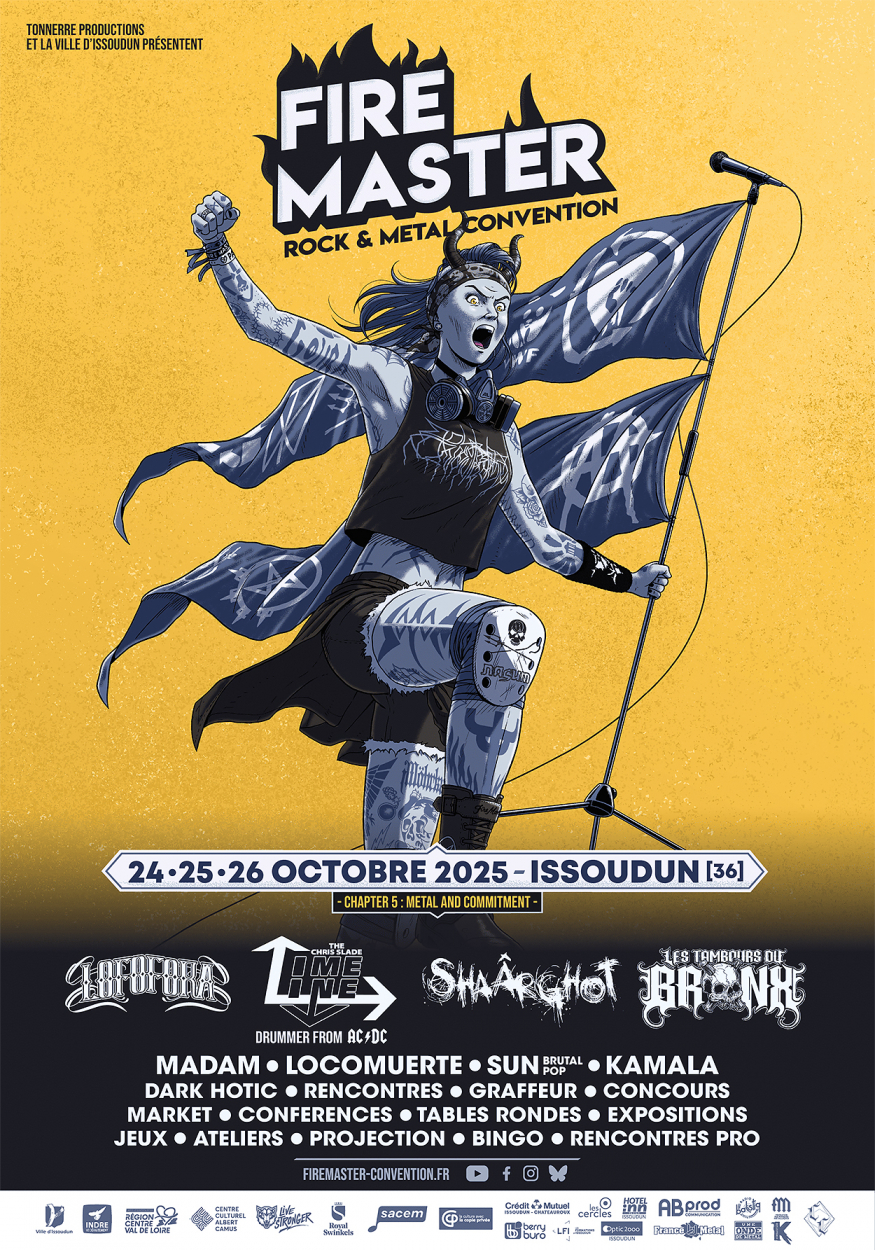 Après une pause remarquée, la Firemaster Convention fera son grand retour du 24 au 26 octobre 2025 inclus, à Issoudun, dans l’Indre. Au son du rock et du metal, conférences, tables rondes et concerts seront au programme de cette nouvelle édition.
