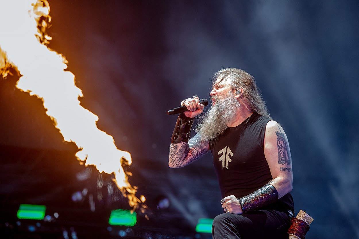 J’enchaîne aussitôt avec Amon Amarth dont les musiciens, en « bons suédois », font leur show autour d’un décor viking du plus bel effet. Mais plus que ce folklore de circonstance, j’apprécie en premier lieu l’incroyable voix, puissante et grave, du chanteur Johan Hegg : une énorme présence scénique ! C’est assurément l’un de mes concerts préférés de cette belle journée de festival. Je décide donc de terminer sur ces belles notes et de faire l’impasse sur Slipknot (seul groupe de la soirée que je ne peux pas photographier, car l’entrée au pit se fait uniquement que pour les quelques heureux dont les noms sont inscrits sur une « short list ») et sur Sabaton qui clôt les festivités. Une fête réussie, en préambule aux trois journées suivantes du Hellfest qui s’annoncent chargées.