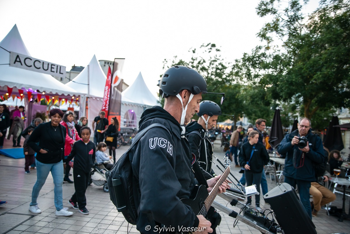 Le vendredi, début du festival, j’étais à l’inauguration, il y avait déjà foule sur la place de la Mairie, l’urgence étant de se procurer le programme, un dépliant annonçant les horaires des spectacles avec un descriptif pour chacun d’entre eux. La particularité des Expressifs est la diversité des propositions : spectacles de rue, jonglage, concerts en tous genres, tout ceux-ci étant dispersés dans le centre-ville de Poitiers, scènes et chapiteaux installés à différents endroits, places, cours de bâtiments, salles, bars…. Les spectateurs munis de leur programme, parcourent le centre-ville pour aller voir tel ou tel spectacle, ou bien ils errent au hasard des découvertes qu’ils feront sur leur chemin. Tout ceci représente une grosse organisation, beaucoup de technique à installer, de techniciens à prévoir, de bénévoles, de personnes à nourrir, à héberger aussi pour ceux qui viennent de loin, bref on peut féliciter POITIERS JEUNES pour l’orga.
