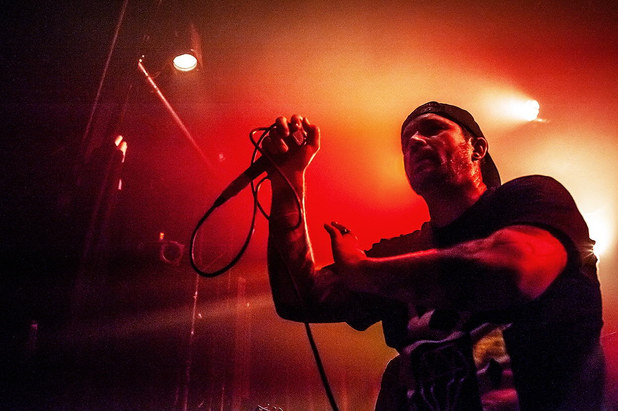 Je m’octroie ensuite une petite pause au bar avant de poursuivre mon périple photographique avec le set de Breed Machine, groupe français de deathcore qui enflamme littéralement la salle. L’ambiance est alors quasiment à son paroxysme : multiples sauts sur scène, deathwall et autres slams sont de rigueur ! Je vis l’un des moments les plus sauvages et mouvementés de la soirée, mais toujours dans une atmosphère de franche camaraderie, si chère aux petits festivals. Puis vient l’apothéose via Betraying the Martyrs qui donne tout ! Les pogos, aussi nombreux qu’intenses, témoignent de l’osmose qui règne entre le groupe parisien de metalcore et le public chauffé en effervescence : une prestation qui clôt en beauté cette première soirée.