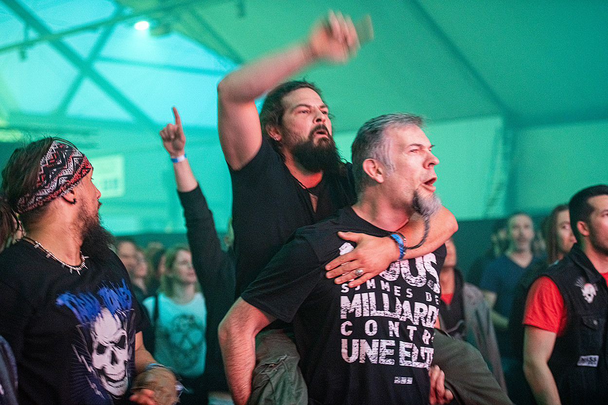 Samedi, nous vîmes successivement les concerts de Shewolf (grunge), Aro Ora (metal alternatif), Sidilarsen (metal indus), Betraying The Martyrs (metalcore) et The Exploited (punk/hardcore). Mon bilan de la journée : déception pour Shewolf, dont la musique ne m’a pas touché et qui, trop entrecoupée de temps morts entre les morceaux, m’a laissé sur ma faim, et, à l’inverse, gros coup de cœur pour Aro Ora qui nous gratifia d’une prestation efficace et dynamique à souhait.