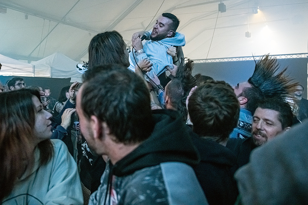 Samedi, nous vîmes successivement les concerts de Shewolf (grunge), Aro Ora (metal alternatif), Sidilarsen (metal indus), Betraying The Martyrs (metalcore) et The Exploited (punk/hardcore). Mon bilan de la journée : déception pour Shewolf, dont la musique ne m’a pas touché et qui, trop entrecoupée de temps morts entre les morceaux, m’a laissé sur ma faim, et, à l’inverse, gros coup de cœur pour Aro Ora qui nous gratifia d’une prestation efficace et dynamique à souhait.