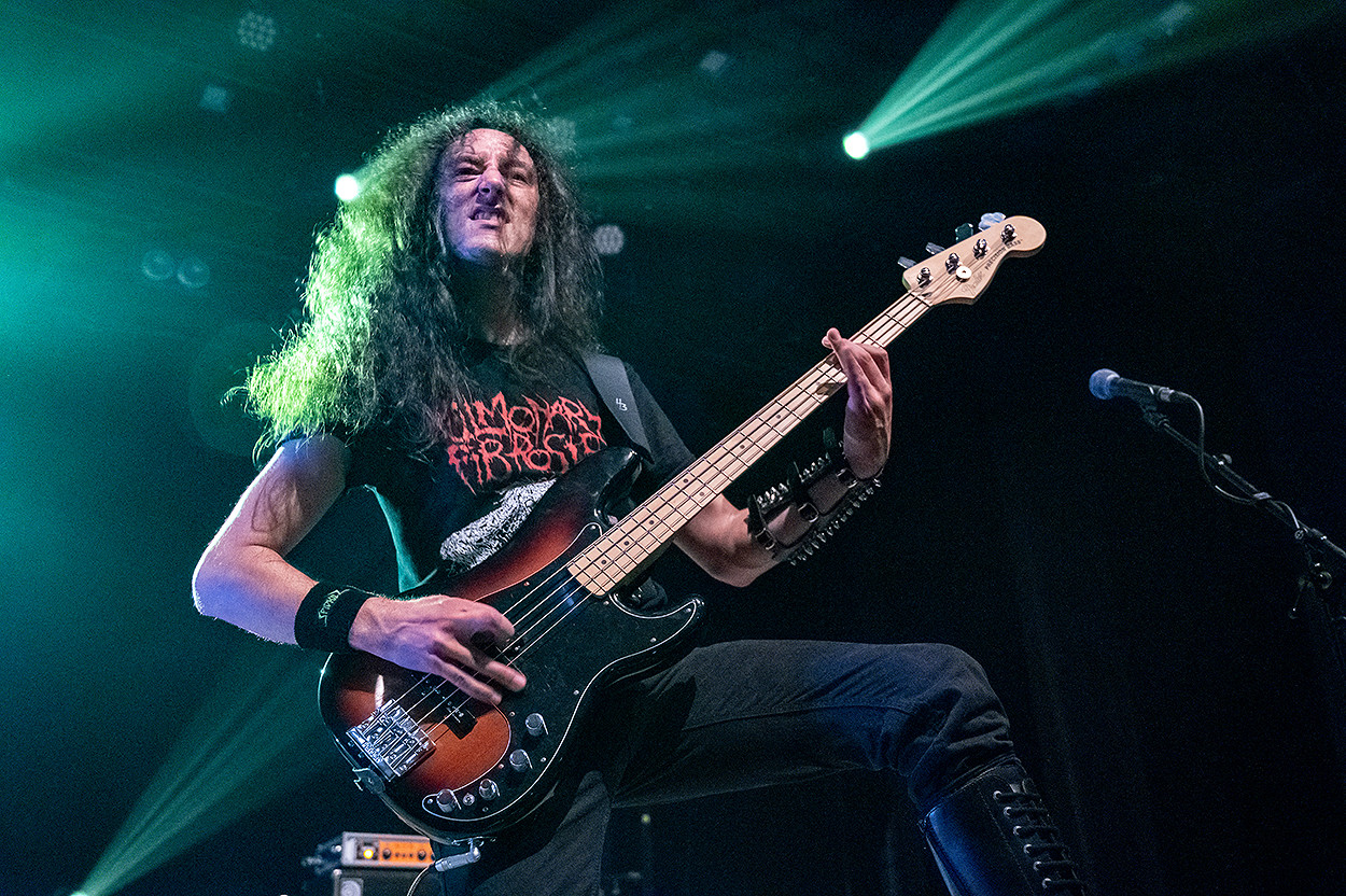 Après une petite pause au bar, je repris du service pour Execution qui nous offrit alors un très bon concert de death metal, avant de laisser la place à Legions Of War qui, comme la veille, assurèrent leur set. Vient ensuite le concert de Misanthrope, groupe que je suis depuis ses débuts et que j’apprécie toujours autant. Il est vrai que Philippe Courtois et sa bande de joyeux drilles, qui connaissent bien leur métier, nous accordèrent, une fois de plus, une excellente prestation. Quant à Manzer, groupe black metal emblématique de la région et que j’ai découvert sur scène en 2020, dans la même salle, il illustra parfaitement le postulat selon lequel un trio fonctionne à merveille dès lors qu’il est fusionnel. Ce fut un réel bonheur ! Malgré tout c’est lors du set de Seol que le plaisir ressenti à couvrir cette deuxième soirée atteint son paroxysme : mise en scène sombre, costumes élaborés et black metal lugubre à souhait caractérisèrent ce magnifique show du groupe guatémaltèque. Dans un tout autre registre, le final assuré par Killers, illustre entité de la scène heavy metal française qui fête ses 40 ans d’existence, fut tout aussi grandiose !