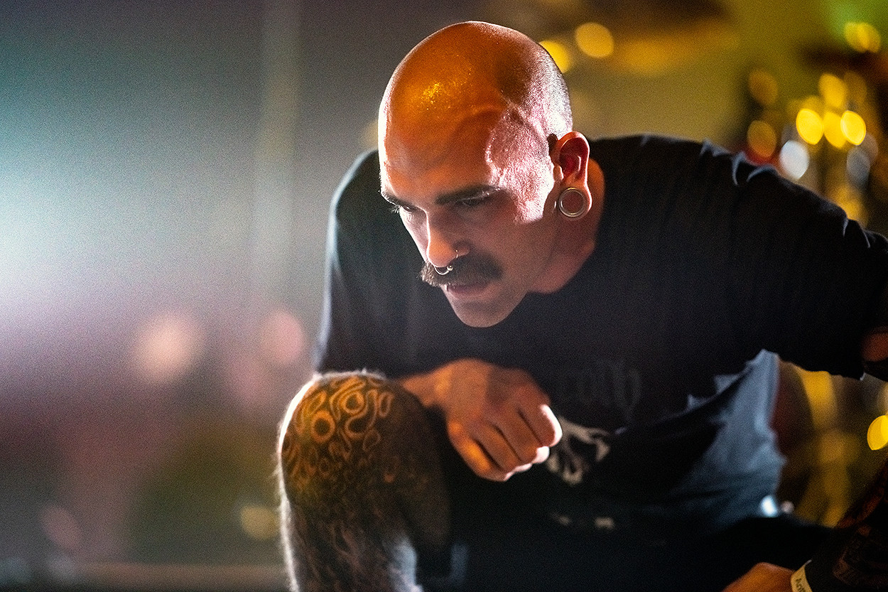 Nous arrivons sur place autour de 14h30, une marge suffisante pour nous présenter, retirer nos accréditations, prendre nos marques et nous imprégner de l’ambiance des lieux, avant les concerts qui débutent à 15 heures. Le site, construit autour d’une salle moderne entouré d’un espace de détente à l’air libre, est très agréable, permettant ainsi de s’oxygéner entre deux concerts. A l’intérieur du théâtre se trouve un large comptoir derrière lequel est installé un premier bar. Quelques stands de merchandising sont également présents. Un second bar est placé à l’extérieur, près de quelques tables et chaises, ainsi qu’un stand de restauration qui propose des plats cuisinés sur place à des prix tout à fait corrects (autour de 5 euros l’assiette de chili con carne ou de dahl de coco). En revanche, c’est à l’Anthems Of Steel que j’ai constaté que le prix de la bière a subi une forte inflation depuis la reprise des concerts. Désormais, il faut compter autour de 4 euros le demi et vers 7 euros, voire 8, la pinte de bière, et aucun des festivals ou concerts que j’ai couverts depuis n’a encore fait exception. C’est un peu cher et dichotomique avec le prix des places qui, de son côté, est tout à fait accessible compte tenu de la qualité et de la diversité de la programmation. Malheureusement, pour en avoir discuté par la suite avec quelques organisateurs d’événements de ce type, il est désormais difficile de proposer ce doux breuvage aux tarifs pratiqués avant l’épidémie de Covid 19. Je ne suis pas économiste et je ne m’étendrais donc pas plus sur le sujet, me contentant juste de constater les faits. Cette parenthèse close, entrons dans le vif du sujet..