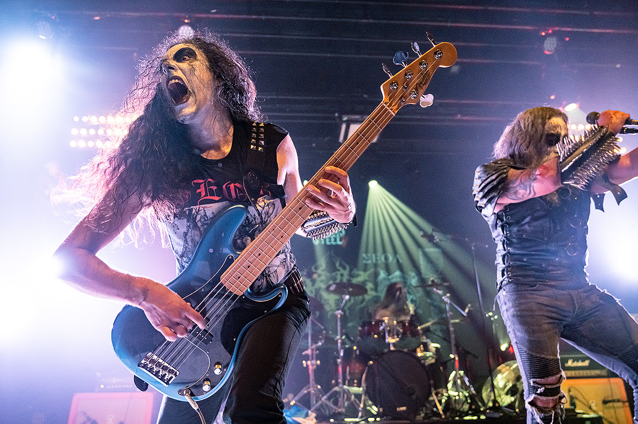 Après une petite pause au bar, je repris du service pour Execution qui nous offrit alors un très bon concert de death metal, avant de laisser la place à Legions Of War qui, comme la veille, assurèrent leur set. Vient ensuite le concert de Misanthrope, groupe que je suis depuis ses débuts et que j’apprécie toujours autant. Il est vrai que Philippe Courtois et sa bande de joyeux drilles, qui connaissent bien leur métier, nous accordèrent, une fois de plus, une excellente prestation. Quant à Manzer, groupe black metal emblématique de la région et que j’ai découvert sur scène en 2020, dans la même salle, il illustra parfaitement le postulat selon lequel un trio fonctionne à merveille dès lors qu’il est fusionnel. Ce fut un réel bonheur ! Malgré tout c’est lors du set de Seol que le plaisir ressenti à couvrir cette deuxième soirée atteint son paroxysme : mise en scène sombre, costumes élaborés et black metal lugubre à souhait caractérisèrent ce magnifique show du groupe guatémaltèque. Dans un tout autre registre, le final assuré par Killers, illustre entité de la scène heavy metal française qui fête ses 40 ans d’existence, fut tout aussi grandiose !