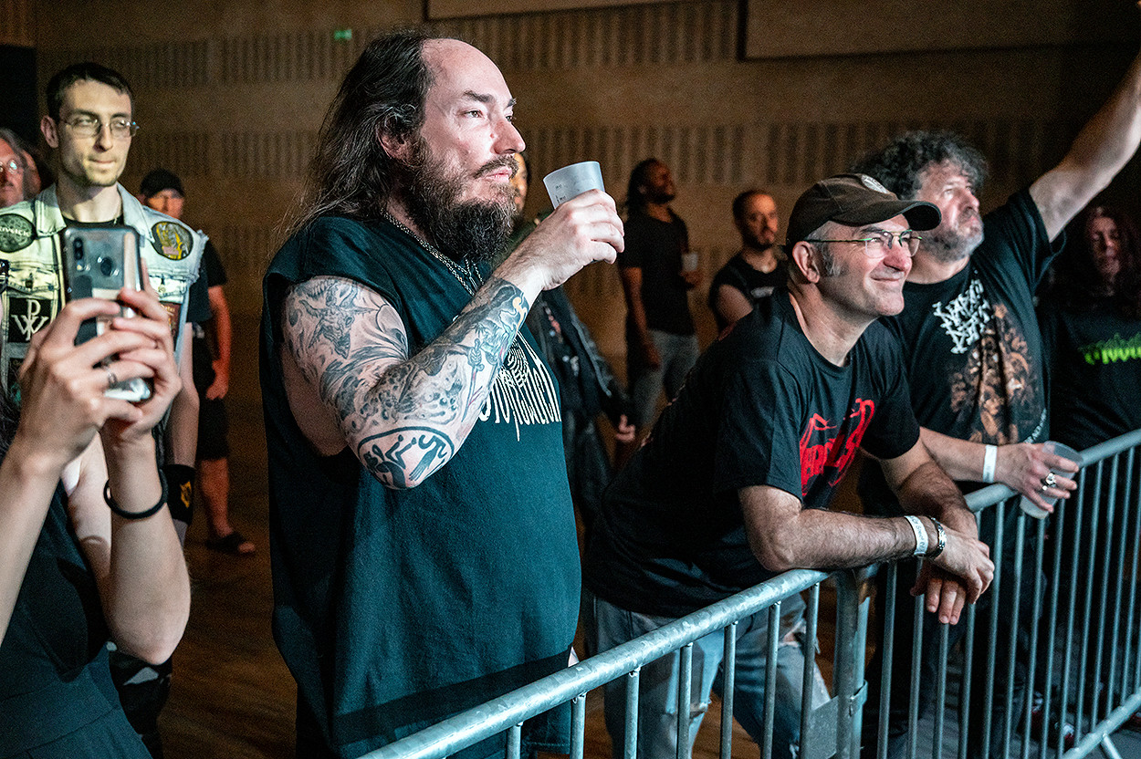 Après une petite pause au bar, je repris du service pour Execution qui nous offrit alors un très bon concert de death metal, avant de laisser la place à Legions Of War qui, comme la veille, assurèrent leur set. Vient ensuite le concert de Misanthrope, groupe que je suis depuis ses débuts et que j’apprécie toujours autant. Il est vrai que Philippe Courtois et sa bande de joyeux drilles, qui connaissent bien leur métier, nous accordèrent, une fois de plus, une excellente prestation. Quant à Manzer, groupe black metal emblématique de la région et que j’ai découvert sur scène en 2020, dans la même salle, il illustra parfaitement le postulat selon lequel un trio fonctionne à merveille dès lors qu’il est fusionnel. Ce fut un réel bonheur ! Malgré tout c’est lors du set de Seol que le plaisir ressenti à couvrir cette deuxième soirée atteint son paroxysme : mise en scène sombre, costumes élaborés et black metal lugubre à souhait caractérisèrent ce magnifique show du groupe guatémaltèque. Dans un tout autre registre, le final assuré par Killers, illustre entité de la scène heavy metal française qui fête ses 40 ans d’existence, fut tout aussi grandiose !