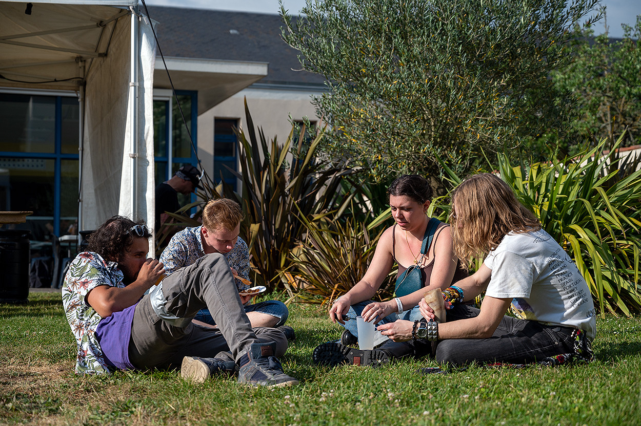 Nous arrivons sur place autour de 14h30, une marge suffisante pour nous présenter, retirer nos accréditations, prendre nos marques et nous imprégner de l’ambiance des lieux, avant les concerts qui débutent à 15 heures. Le site, construit autour d’une salle moderne entouré d’un espace de détente à l’air libre, est très agréable, permettant ainsi de s’oxygéner entre deux concerts. A l’intérieur du théâtre se trouve un large comptoir derrière lequel est installé un premier bar. Quelques stands de merchandising sont également présents. Un second bar est placé à l’extérieur, près de quelques tables et chaises, ainsi qu’un stand de restauration qui propose des plats cuisinés sur place à des prix tout à fait corrects (autour de 5 euros l’assiette de chili con carne ou de dahl de coco). En revanche, c’est à l’Anthems Of Steel que j’ai constaté que le prix de la bière a subi une forte inflation depuis la reprise des concerts. Désormais, il faut compter autour de 4 euros le demi et vers 7 euros, voire 8, la pinte de bière, et aucun des festivals ou concerts que j’ai couverts depuis n’a encore fait exception. C’est un peu cher et dichotomique avec le prix des places qui, de son côté, est tout à fait accessible compte tenu de la qualité et de la diversité de la programmation. Malheureusement, pour en avoir discuté par la suite avec quelques organisateurs d’événements de ce type, il est désormais difficile de proposer ce doux breuvage aux tarifs pratiqués avant l’épidémie de Covid 19. Je ne suis pas économiste et je ne m’étendrais donc pas plus sur le sujet, me contentant juste de constater les faits. Cette parenthèse close, entrons dans le vif du sujet..
