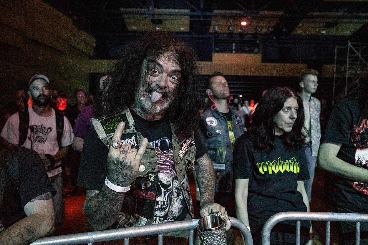Endbroken assura d’emblée grâce à son heavy/trash metal qui conquit rapidement le public : excellente entrée dans le vif du sujet ! Quant à Dionysiaque, que je n’avais encore jamais vu sur scène, j’ai été immédiatement séduit par l’énorme capital sympathie affiché par ces musiciens qui s’illustrent dans un doom très honnête, même si le genre n’a habituellement pas trop mes faveurs (à tel point que je les reverrai volontiers en concert). De même, j’ai beaucoup aimé le set de Legions Of War qui distilla son trash de manière subtile, tout en finesse. Puis ce fut au tour de Mortal Scepter de monter sur scène pour un show puissant et dynamique. C’est toutefois par le biais de Mercyless que j’ai reçu ma première grosse claque musicale de la soirée. Le groupe a tout donné lors de son concert très orienté death metal « old school ». La suite fut toute aussi grandiose, via le concert d’Agressor qui irradia le public, me gratifiant au passage d’une seconde baffe musicale. Je reçus le K.O. final lors du passage de Bütcher. Les belges ont tout déchiré lors de leur concert de clôture de cette première soirée : ce fut l’apothéose !