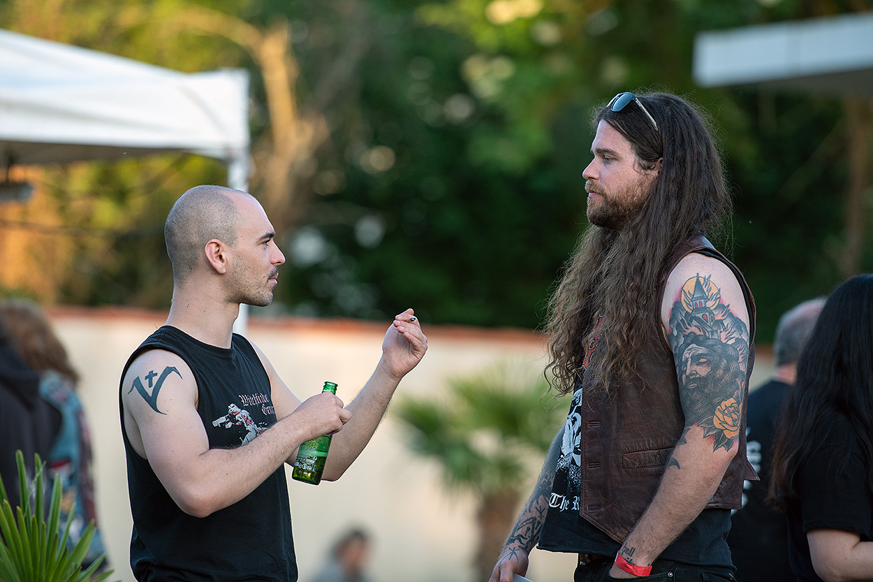 Sept groupes se partagèrent l’affiche du premier jour, de 15 heures à minuit. Toutefois, deux petits bouleversements vinrent agiter ce programme bien établi. Sacrifizer dut annuler son concert et fut alors remplacé in extremis par Legions Of War (qui rejouera aussi le lendemain). De même, nos amis belges de Bütcher ayant eu quelques petits soucis sur la route, se produisirent finalement sur scène en dernière partie de soirée. Nous vîmes donc successivement sur scène Endbroken, Dionysiaque, Legions Of War, Mortal Scepter, Mercyless, Agressor et Bütcher.