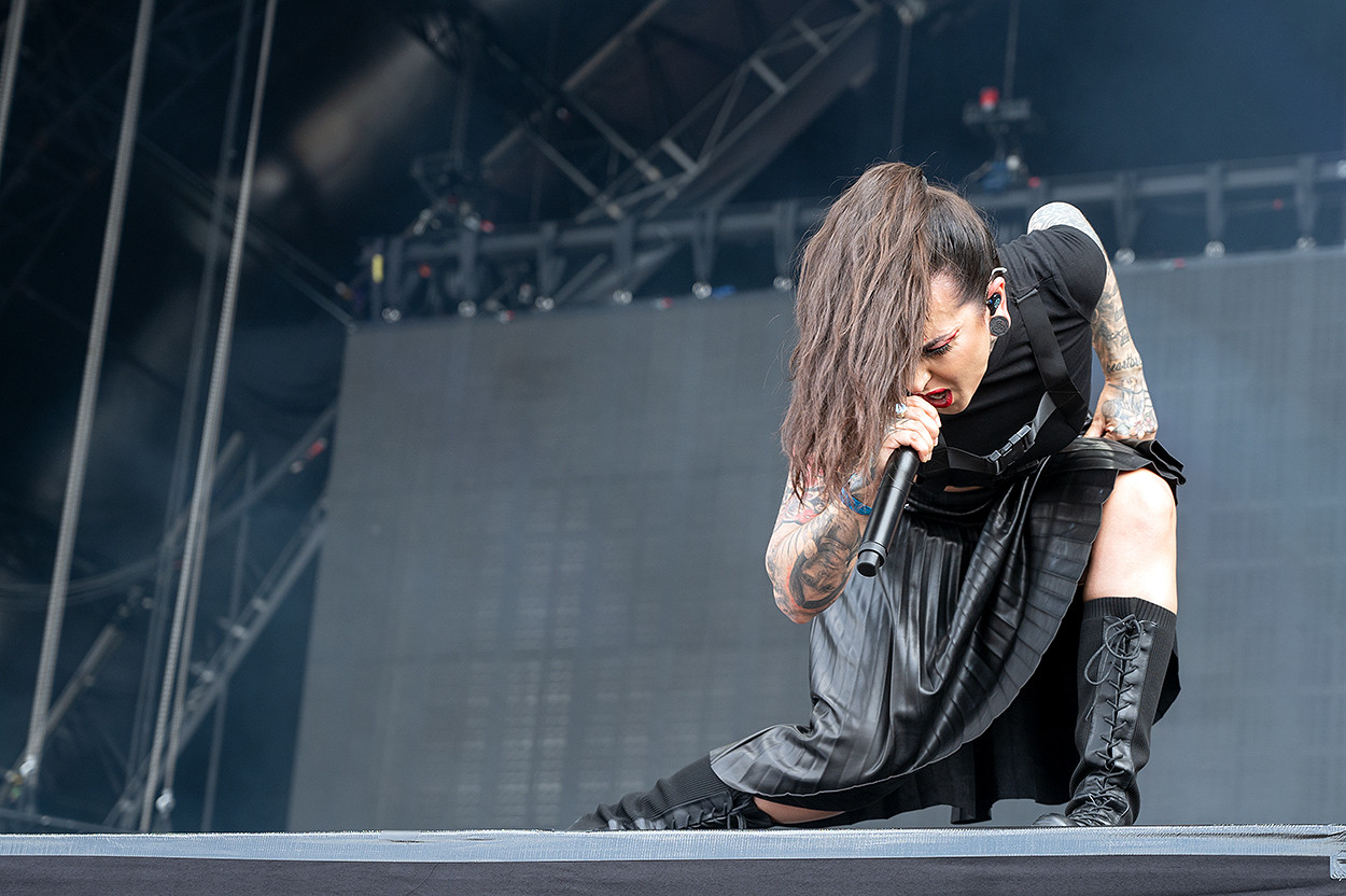 Un peu plus tard, je repasse dans le pit du Mainstage 2 lors du set de Doro que je tenais à couvrir. Quelle émotion, l’emblématique chanteuse surnommée « The Metal Queen » subjugue le public en lui communiquant son plaisir non feint d’être sur scène. Je suis touché par la sensibilité qui émane de cette grande dame de la scène metal et dont le show est l’un des plus émouvants de ceux que j’ai couverts cette année. Je poursuis ensuite mes pérégrinations devant la Mainstage 1 pour le set de Jinjer. Or, bien que je sois assez peu sensible au groove metalcore de cette formation ukrainienne chapeautée par la chanteuse Tatiana Schmayluk, je la couvre toujours avec grand plaisir, les musiciens se montrant toujours très dynamiques sur scène : un vrai régal pour un photographe de scène.