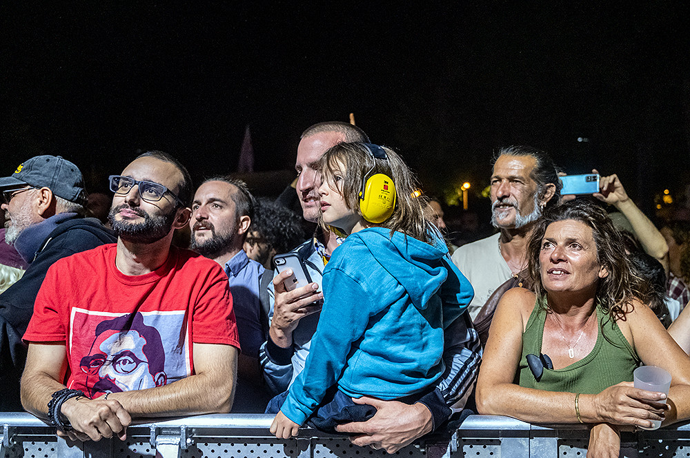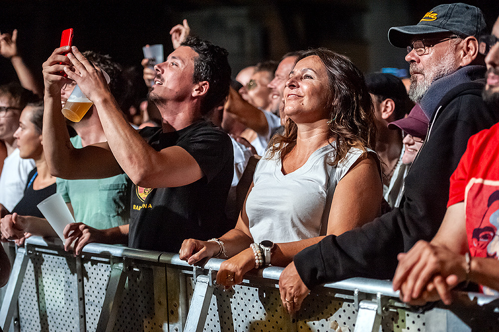 Arrivés sur place dans l’après-midi du 26 août, nous avons retrouvé avec plaisir les équipes fort sympathiques des organisateurs et des photographes habitués à couvrir l’Urban Empire. L’atmosphère est à la franche camaraderie ce qui nous ravit. L’aménagement du site de l’esplanade du stade Beaublanc a été optimisé par rapport à celui de la précédente édition. Ainsi, même si le festival fait toujours appel à deux scènes de tailles différentes, la seconde, plus petite, placée en fond du couloir formé par les « food trucks » et autres stands de « merchandising », est nettement plus visible qu’elle ne l’était en 2021. Ce choix s’avère judicieux car il nous a permis de découvrir de petites pépites parmi les groupes locaux qui s’y sont produits, en complément des artistes de plus grande renommée qui ont joué sur la scène principale.