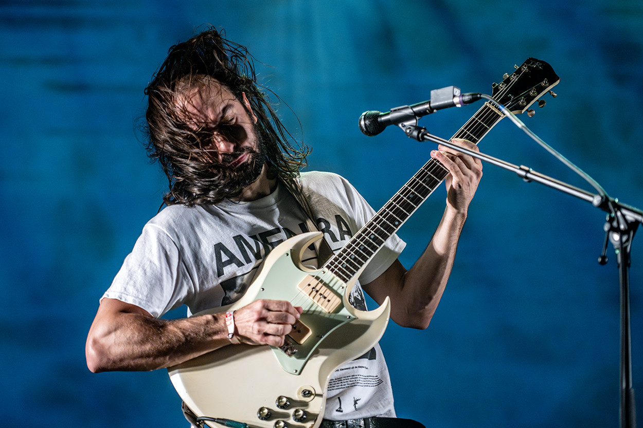 Ce premier jour du festival accueillit environ 10 000 personnes. Les festivités s’ouvrirent avec le concert de Kerchak, débordant d’amateurisme et de maladresse : à oublier ! Fort heureusement, qui prirent ensuite le relais corrigèrent le tir. C’est toujours un plaisir de voir sur scène ces joyeux montpelliérains qui jouent beaucoup avec leur public. Nous changêames ensuite de registre via Tiken Jah Fakoly, chantre du reggae ivoirien qui nous offrit une prestation pleine de fraîcheur. Nous passons sur le concert de Zaho de Sagazan que nous n’avons pas suivi, celle-ci nous ayant refusé l’accès au pit photo. Nous oubliâmes vite ce caprice de « star » devant l’excellent concert de Rodrigo Y Gabriela. Ce fut assurément notre belle découverte du jour ! La journée se prolongea via les sets de Dinos (rappeur français originaire du Cameroun), Osees (groupe de garage-rock américain), remarquable, et Trinix (duo français de musique électronique).