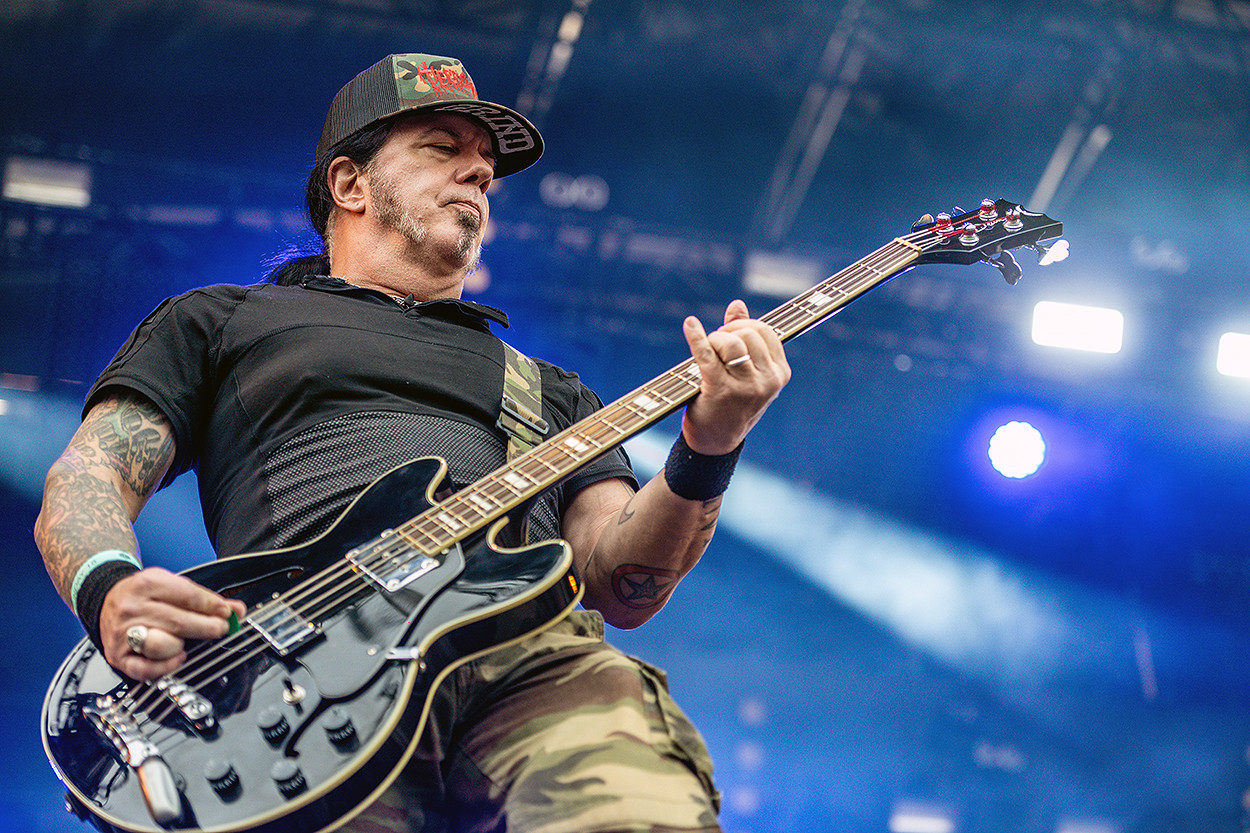 Je change ensuite d’ambiance, devant le concert du groupe américain Unearth. Leur metalcore, sans être vraiment original, est efficace et touche le public de plein fouet : un bon moment de partage ! Puis arrive le set du quatuor Hirax, qui reste ma plus belle surprise de la journée. Le thrash metal old school de ces californiens sonne juste. Les musiciens sont heureux d’être sur scène et le montrent, notamment le chanteur Katon W. De Pena qui affiche sans discontinuer un large sourire et des yeux rieurs. Je prolonge mon bonheur face au concert explosif d’Exumer, groupe phare de la grande famille du thrash metal « made in Germany ». Les musiciens, en grande forme, irradient la scène, multipliant les mimiques et autres grimaces délirantes pour notre plus grande joie.