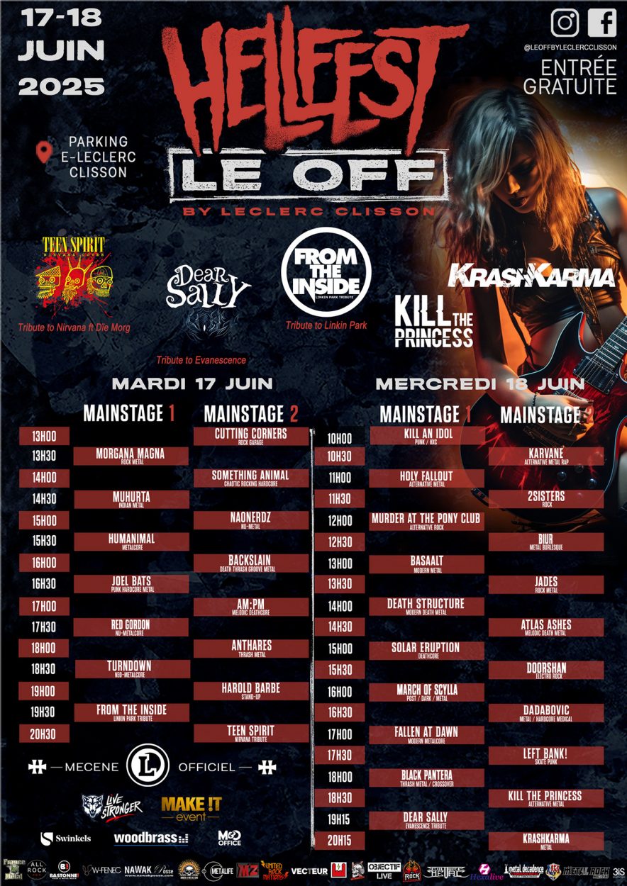 Le “Off” du Hellfest se tiendra les 17 et 18 juin 2025 au centre commercial Leclerc de Clisson. Les deux scènes seront alors arpentées par 35 groupes. L’entrée sera gratuite.