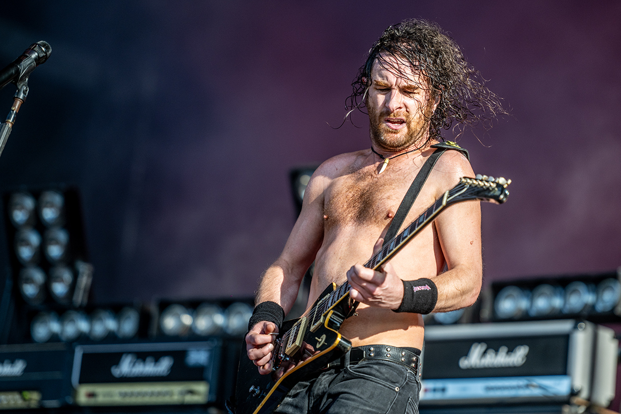 Je continue ma tournée des Mainstages devant Kim Dracula, alias Samuel Wellings, que je découvre ainsi pour la première fois sur scène. Force est d’admettre que l’australien originaire de Tasmanie, malgré un tonus certain, ne m’a guère touché musicalement. A contrario, Airbourne qui enchaîna juste après sur la Mainstage 1 m’est allé droit au coeur. Mais il est vrai que ce combo australien, sous la houlette de son chanteur et leader Joel O’Keeffe, toujours débordant d’énergie, irradie d’emblée l’atmosphère de son allégresse communicative.
