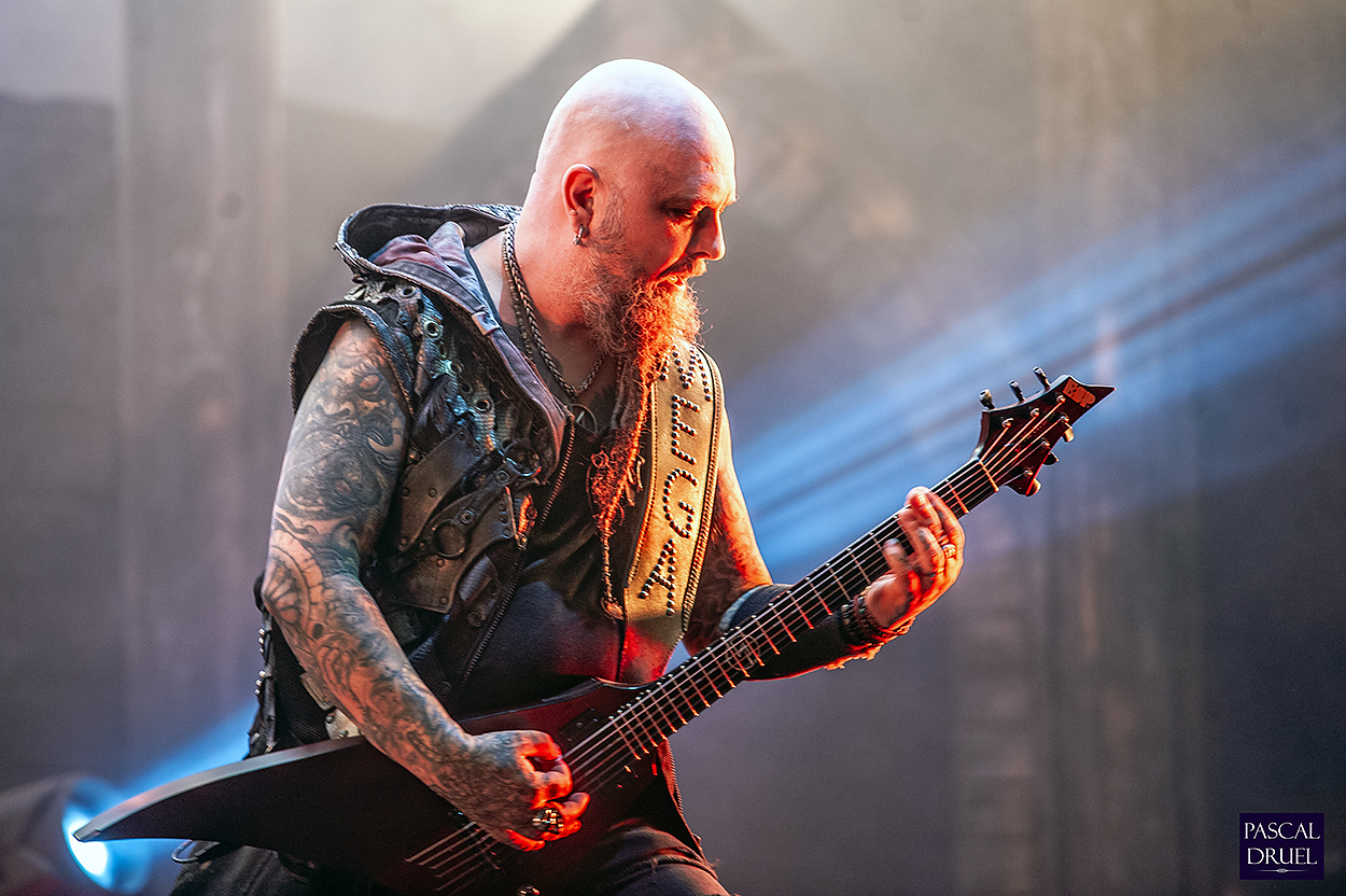 Après un bref passage à l’espace presse, je me ruai dans le pit photo, en couverture de Lacuna Coil, l’une des grosses pointures de la journée, dont le duo de vocalistes formé par Cristina Scabbia et Andrea Ferro fait toujours autant mouche. Certes le metal gothique de ces italiens a évolué au fil des années, mais quel groupe reste monolithique après plus de trente ans d’existence ? J’ai donc toujours autant de plaisir à les écouter et à les photographier au fil des ans. Encore tout guilleret, je me faufilai ensuite devant la Supositor Stage, sans savoir que j’allais prendre l’une de mes grosses claques de la journée avec le set de Fleshgod Apocalypse, pourtant couvert plusieurs fois auparavant. Personne ne se refait : j’aime le death metal symphonique de ces italiens et je suis très réceptif à la voix de la chanteuse Veronica Bordacchini. Encore tout ému à la sortie du pit, je déambulai en direction de l’espace presse où je rejoignis de nombreux confrères. Durant cette première pause bien méritée, je suivis de loin le concert de Kerry King, que je trouve toujours aussi bon.