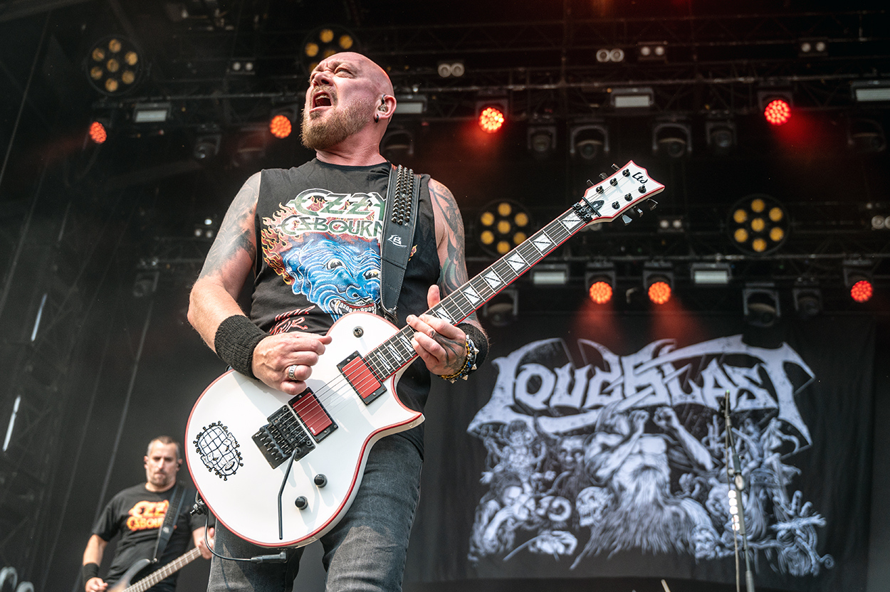 Après avoir consacré mes premières heures à visiter les différents stands installés sur le site de Kerampuilh, j’entrai dans le pit photo peu avant 16 heures, afin d’y suivre Loudblast. Je ne fus donc guère surpris d’apprécier une fois de plus le show de Stéphane Buriez et de sa bande, tant il est vrai que je les ai déjà couverts un nombre incalculable de fois. J’ai également été touché par l’hommage à Ozzy Osbourne rendu par le groupe : chaque musicien portait un t-shirt à l’effigie de ce grand monsieur disparu le 22 juillet 2025. J’enchaînai ensuite avec Skeletal Remains : les américains, gonflés à bloc, galvanisèrent le public qui ne se fit pas prier pour bouger dans tous les sens, contrastant ainsi avec les compositions très carrées et jouées sans la moindre anicroche. Un régal !