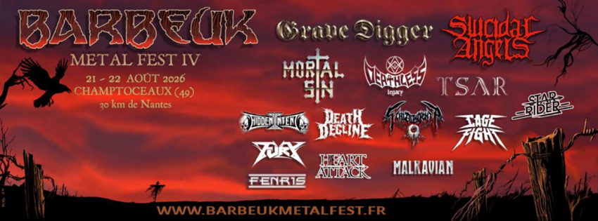 La programmation du Barbeuk Metal Fest IV vient d’être dévoilée. Ce festival à taille humaine se déroulera du 21 au 22 août 2026 à Champtoceaux, à une trentaine de kilomètres de Nantes.